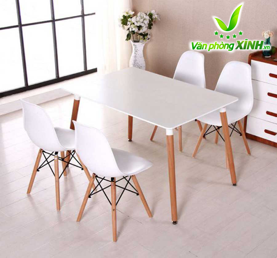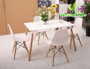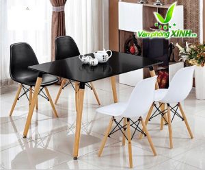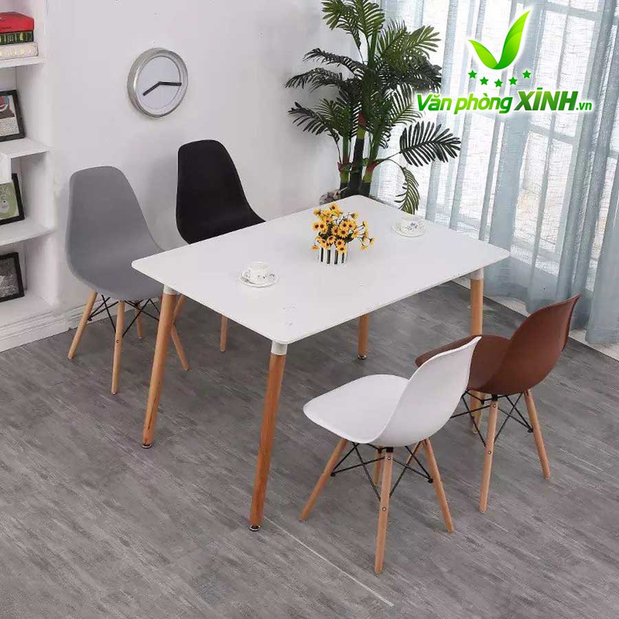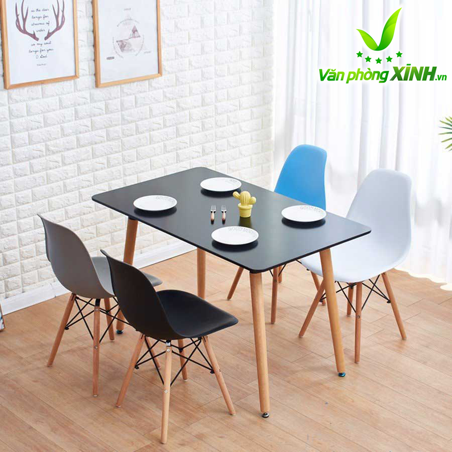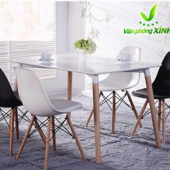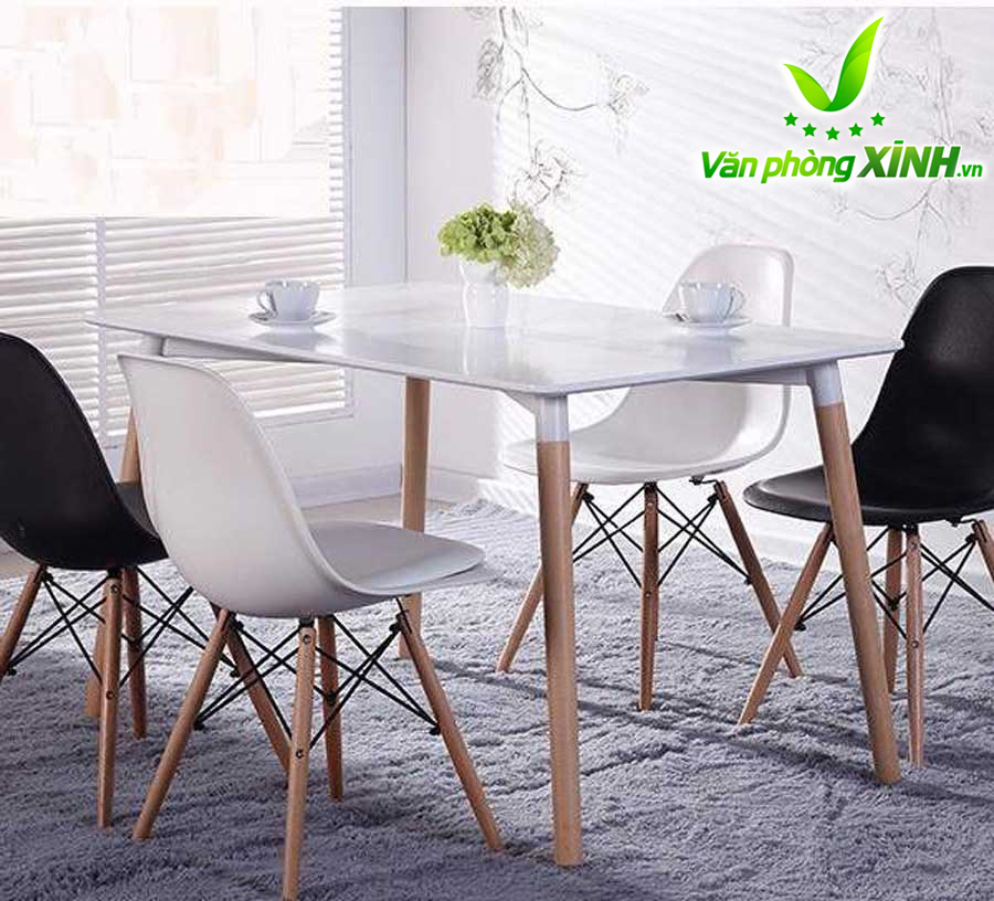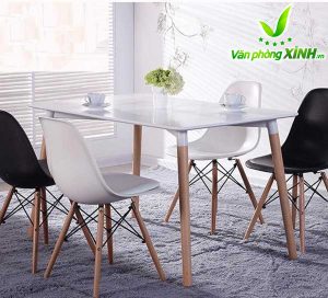 Mặt bàn Eames: làm bằng gỗ nhựa composite với bề mặt sáng bóng, dẻo dai, dễ lau chùi, bền màu với thời gian.