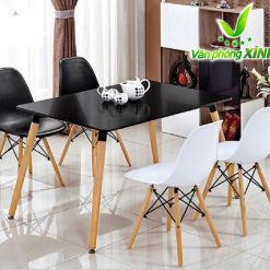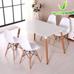 Chân bàn: Chân bàn Eames làm bằng sồi nhập khẩu, gỗ tốt, màu sắc mềm, cứng, chịu mài mòn. Bốn chân bàn được liên kết với nhau bằng khung thép sơn tĩnh điện chắc chắn tạo nên điểm nhấn so với những chiếc bàn thông thường khác.