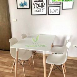 Bàn Mặt Vuông Eames BE120 có kiểu sang trọng với chất liệu tấm MDF cao cấp được sản xuất trên dây chuyền công nghệ cao có khả năng chống thấm nước và dễ dàng lau chùi, làm sạch. Bàn có màu trắng trang nhã hay màu đen sang trọng góp phần tạo không gian thông thoáng và làm nổi bật các món ăn đồ uống được bày biện bên trên tạo cảm giác sạch sẽ, ngon miệng cho thực khách.