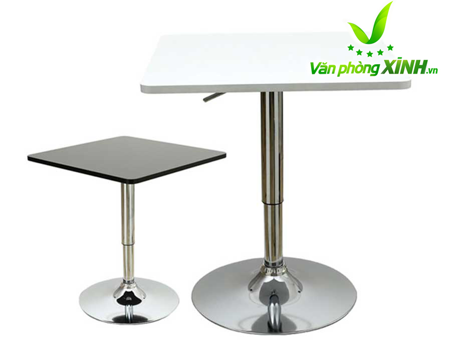 Bàn Mặt Tròn Chân Mạ Crom tăng chỉnh chiều cao BT06M có kiểu sang trọng với chất liệu tấm MDF cao cấp được sản xuất trên dây chuyền công nghệ cao có khả năng chống thấm nước và dễ dàng lau chùi, làm sạch. Bàn có màu trắng trang nhã hay màu đen sang trọng góp phần tạo không gian thông thoáng và làm nổi bật các món ăn đồ uống được bày biện bên trên tạo cảm giác sạch sẽ, ngon miệng cho thực khách.