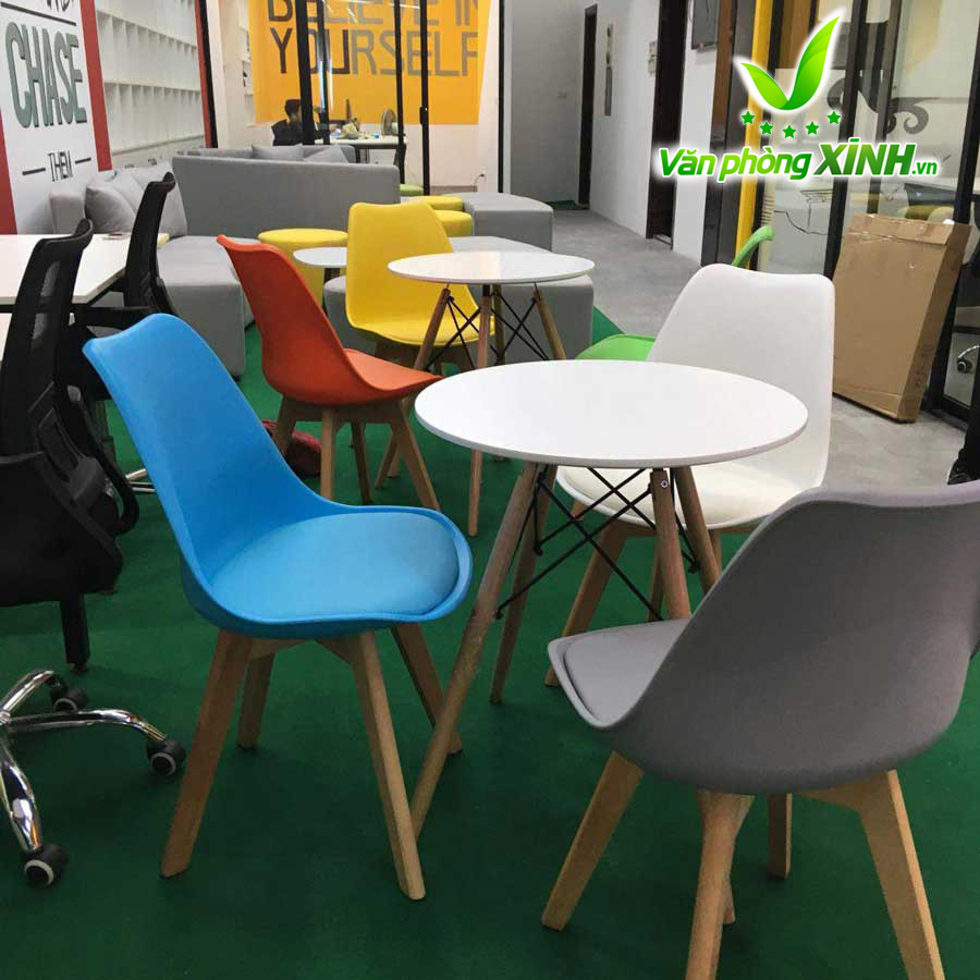 Mặt bàn Eames: làm bằng gỗ nhựa composite với bề mặt sáng bóng, dẻo dai, dễ lau chùi, bền màu với thời gian.