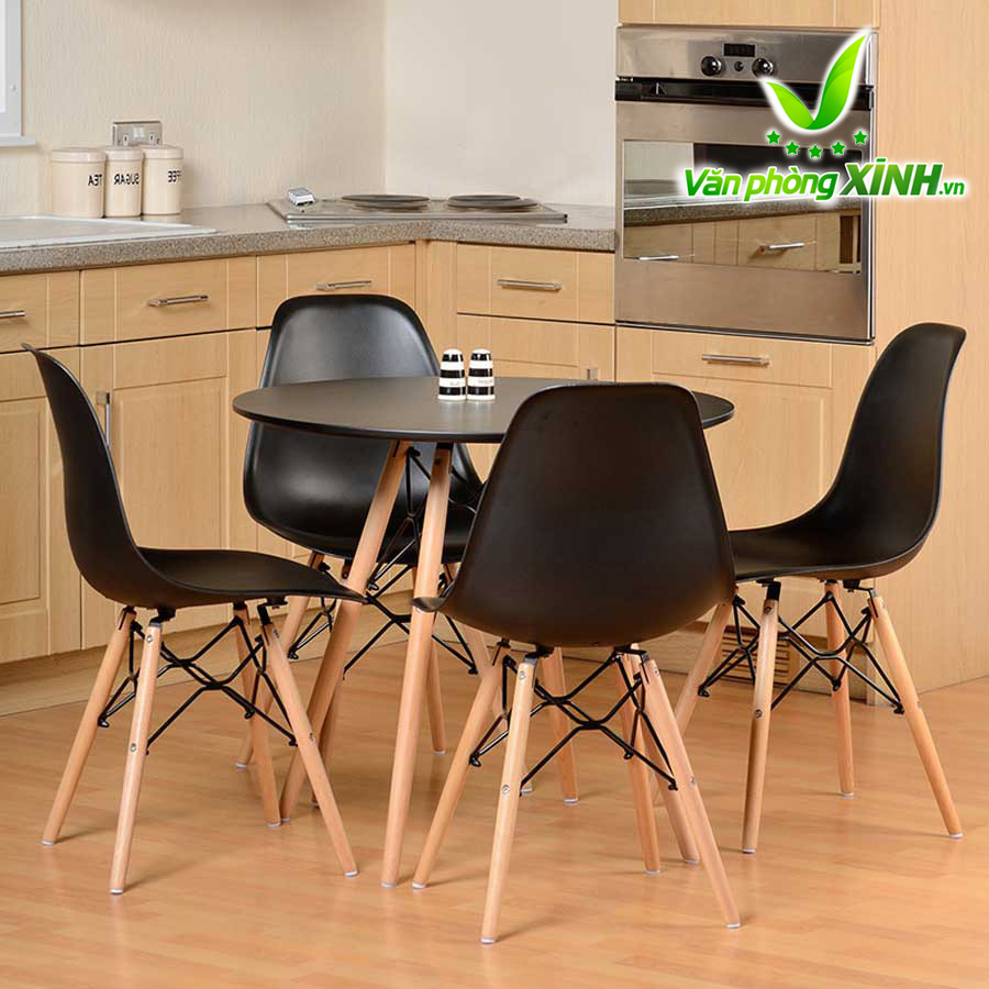 Chân bàn: Chân bàn Eames làm bằng sồi nhập khẩu, gỗ tốt, màu sắc mềm, cứng, chịu mài mòn. Bốn chân bàn được liên kết với nhau bằng khung thép sơn tĩnh điện chắc chắn tạo nên điểm nhấn so với những chiếc bàn thông thường khác.
