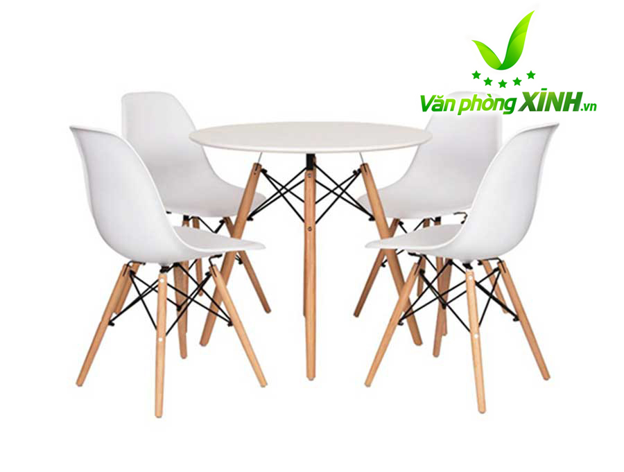 Mặt bàn Eames: làm bằng gỗ nhựa composite với bề mặt sáng bóng, dẻo dai, dễ lau chùi, bền màu với thời gian.