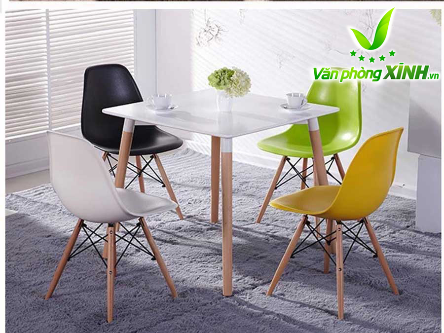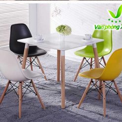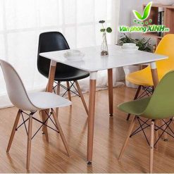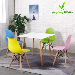 Mặt bàn Eames: làm bằng gỗ nhựa composite với bề mặt sáng bóng, dẻo dai, dễ lau chùi, bền màu với thời gian.