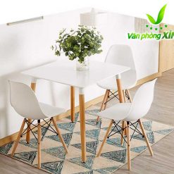 Chân bàn: Chân bàn Eames làm bằng sồi nhập khẩu, gỗ tốt, màu sắc mềm, cứng, chịu mài mòn. Bốn chân bàn được liên kết với nhau bằng khung thép sơn tĩnh điện chắc chắn tạo nên điểm nhấn so với những chiếc bàn thông thường khác.
