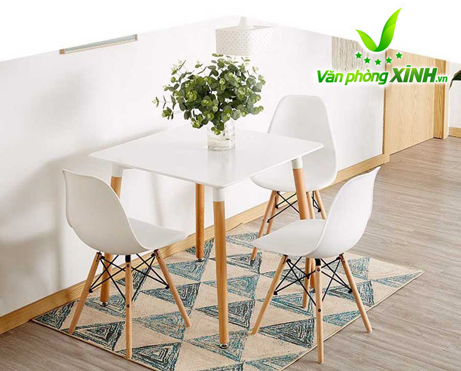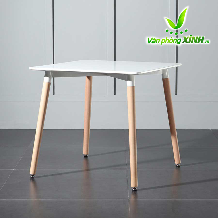 Bàn Mặt Vuông Eames BE08V có kiểu sang trọng với chất liệu tấm MDF cao cấp được sản xuất trên dây chuyền công nghệ cao có khả năng chống thấm nước và dễ dàng lau chùi, làm sạch. Bàn có màu trắng trang nhã hay màu đen sang trọng góp phần tạo không gian thông thoáng và làm nổi bật các món ăn đồ uống được bày biện bên trên tạo cảm giác sạch sẽ, ngon miệng cho thực khách.