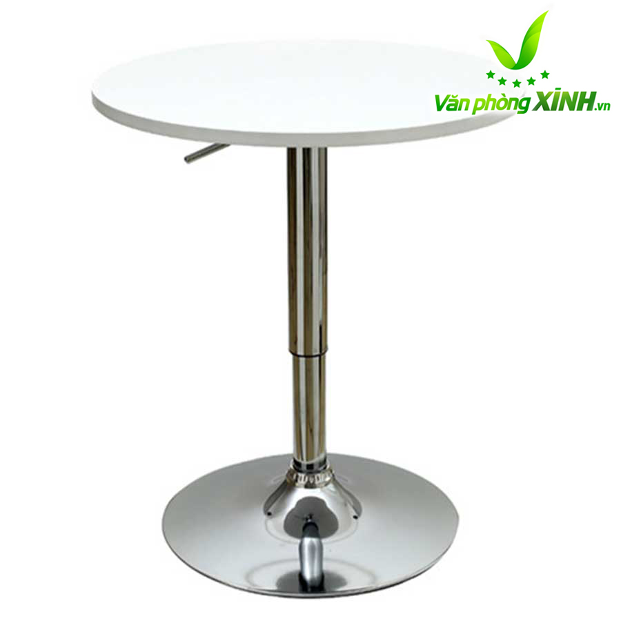Bàn Tròn Chân Mạ Crom Chỉnh Cao Thấp BT08M (Ø80cm) có kiểu sang trọng với chất liệu tấm MDF cao cấp được sản xuất trên dây chuyền công nghệ cao có khả năng chống thấm nước và dễ dàng lau chùi, làm sạch. Bàn có màu trắng trang nhã hay màu đen sang trọng góp phần tạo không gian thông thoáng và làm nổi bật các món ăn đồ uống được bày biện bên trên tạo cảm giác sạch sẽ, ngon miệng cho thực khách.