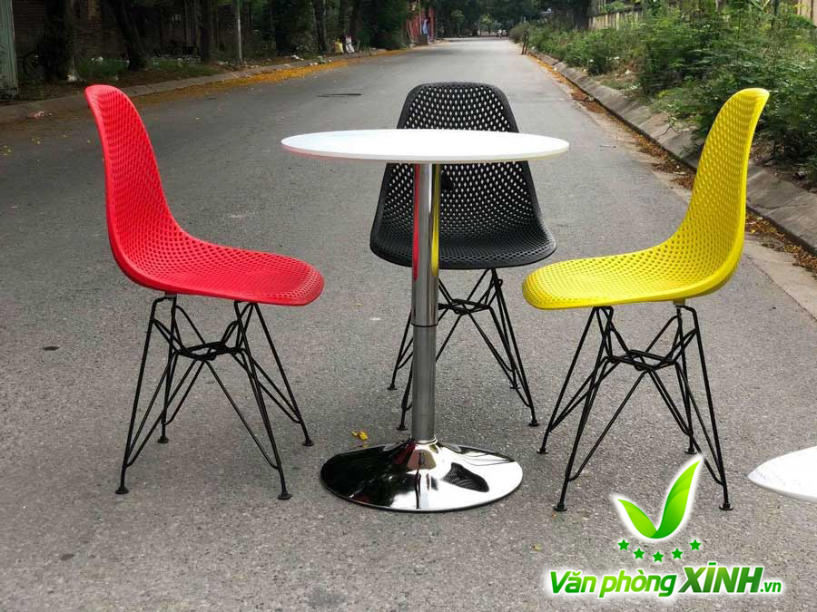 Mặt bàn Eames: làm bằng gỗ nhựa composite với bề mặt sáng bóng, dẻo dai, dễ lau chùi, bền màu với thời gian.
