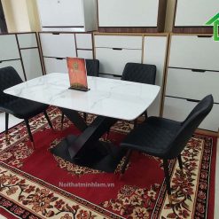 - Mặt bàn ăn với đá cảm thạch nhân tạo có khả năng chống ố, chống bám bẩn, lưu giữ vẻ bóng bẩy và bền bỉ theo thời gian ( khác hoàn toàn với hàng phân khúc kém chất lượng ) . Đây là điểm cộng của bàn ăn N3F, tạo dựng niềm tin trong lòng khách hàng.