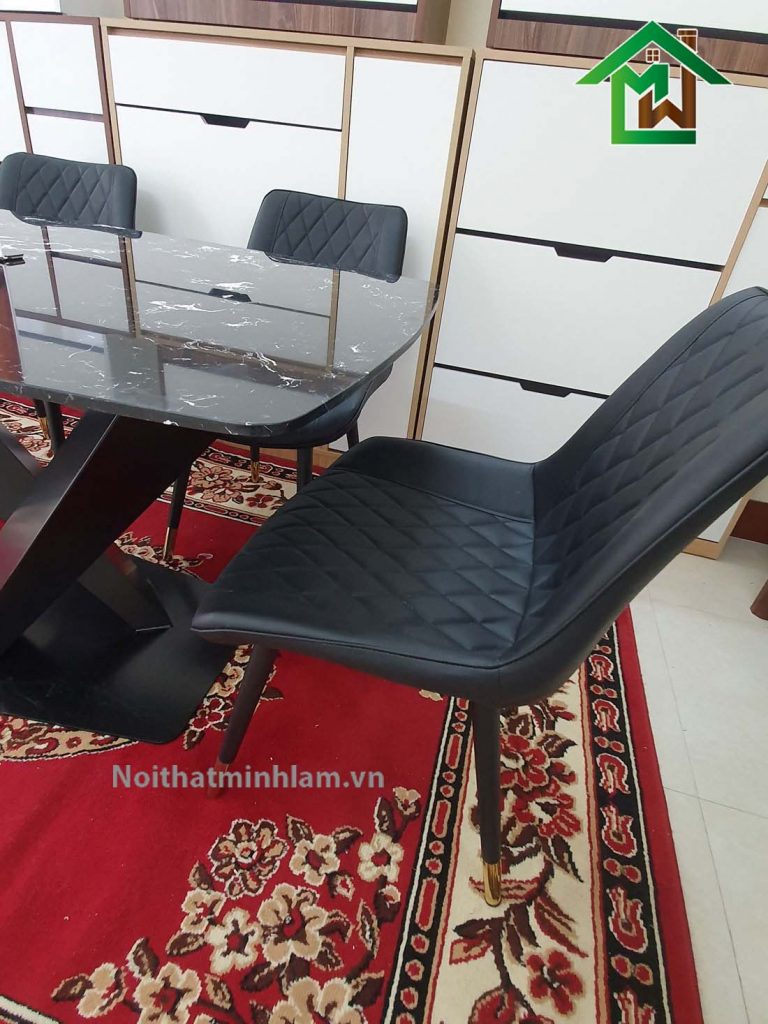 - Ghế: Bọc da PU mềm mại, khung kim loại sơn tĩnh điện chống gỉ, chân ghế bọc nhựa chống xước sàn nhà.