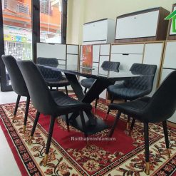 - Ghế: Bọc da PU mềm mại, khung kim loại sơn tĩnh điện chống gỉ, chân ghế bọc nhựa chống xước sàn nhà.