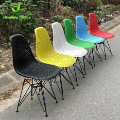 Ghế Eames lưng nhựa lưới chân sắt mạ EA04 được thiết kế bởi nhà thiết kế nội thất nổi tiếng thế giới là Charles và Ray Eames, chiếc ghế được đặt tên luôn theo tên nhà thiết kế là Eames. Thiết kế mang phong cách hiện đại đây là mẫu ghế biểu tượng của thế kỷ 20. Ở thị trường Việt Nam chúng tôi tập trung vào dòng sản phẩm Eames Badova.