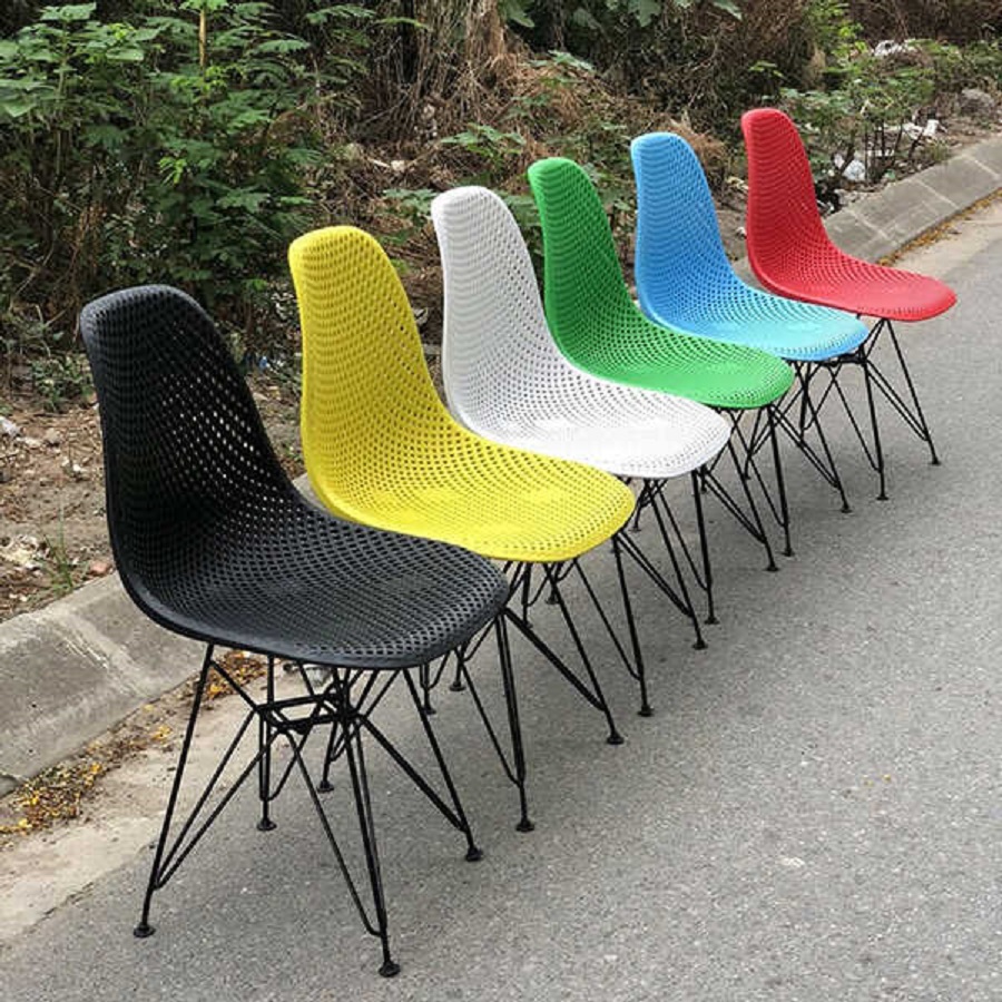 Ghế Eames lưng nhựa lưới chân sắt mạ EA05 được thiết kế bởi nhà thiết kế nội thất nổi tiếng thế giới là Charles và Ray Eames, chiếc ghế được đặt tên luôn theo tên nhà thiết kế là Eames. Thiết kế mang phong cách hiện đại đây là mẫu ghế biểu tượng của thế kỷ 20. Ở thị trường Việt Nam chúng tôi tập trung vào dòng sản phẩm Eames Badova.