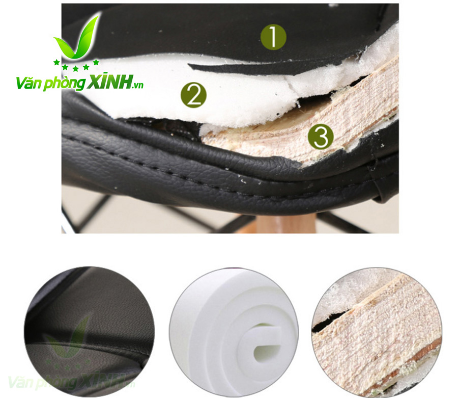 Chân gỗ: chân ghế Eames làm gỗ đan thép có tính chịu lực siêu lớn vô cùng chắc chắn nên đối với những người có cân nặng trên 100kg vẫn có thể sử dụng và dựa vào tựa ghế một cách thoải mái mà không phải đắn đo lo nghĩ.