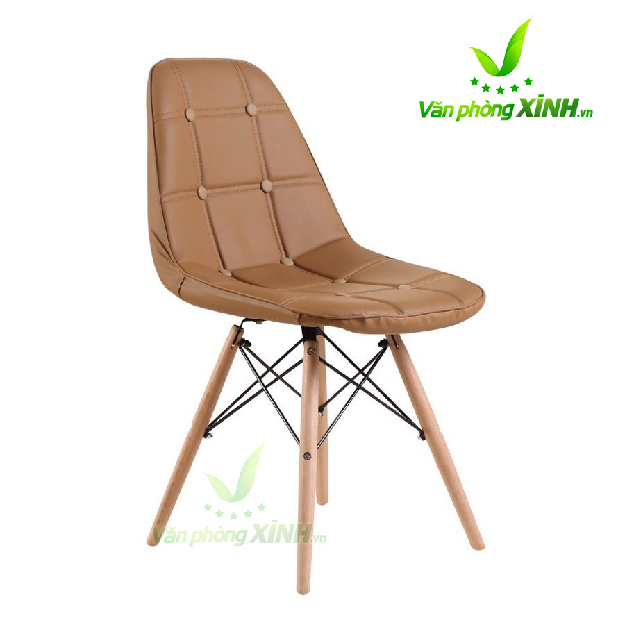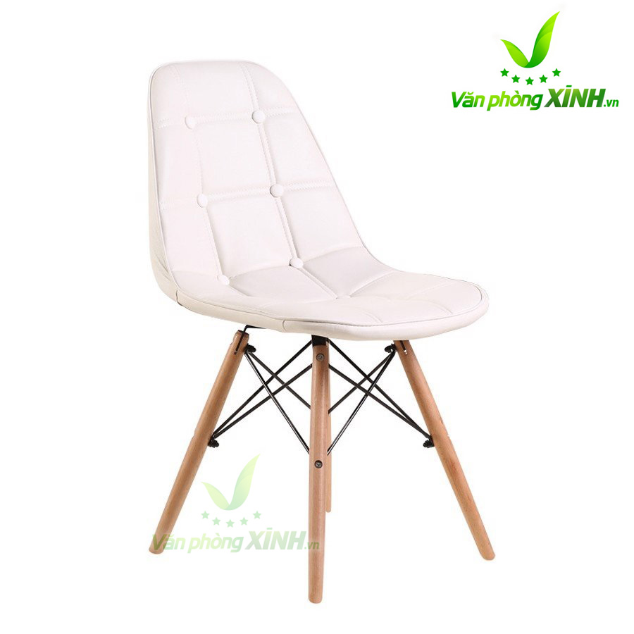 Ghế Eames Cúc Chân Gỗ EA09 là dòng ghế bọc da cao cấp của ghế eames. Ghế đệm mút bọc da chân mạ, mặt simili được làm từ nhựa cao cấp PP và sợi thủy tinh dẻo dai đúc nguyên khối với những đường cong nâng niu cơ thể người dùng. Mặt ngồi hõm sâu, dáng ghế uốn cong tựa như cầu vồng giúp giảm áp lực lên lưng và đùi. Dù ngồi lâu, người sử dụng cũng không bị đau mỏi lưng hay tê chân.