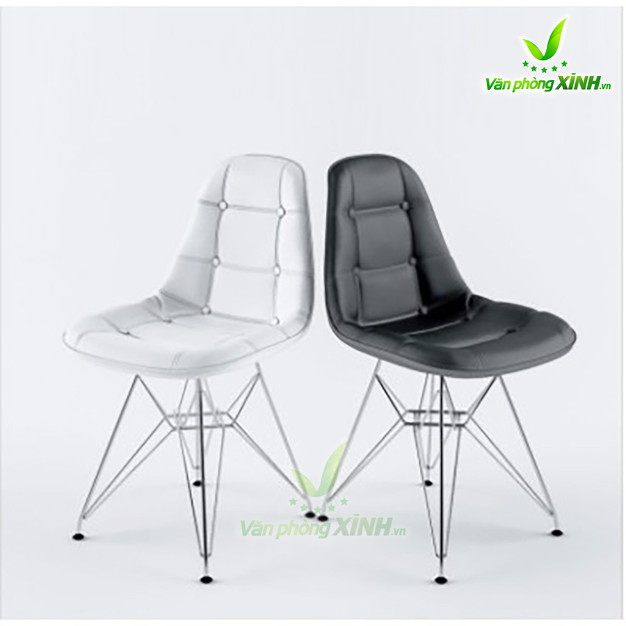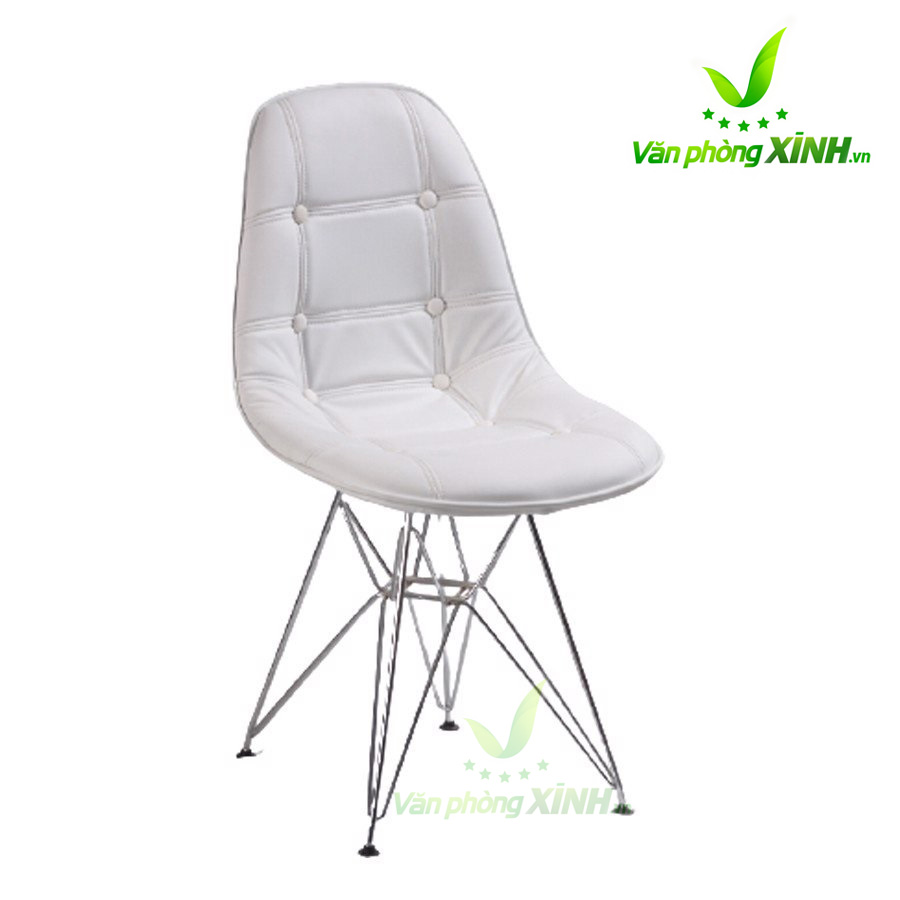 Ghế Eames Cúc Chân Mạ Crom EA10 là dòng ghế bọc da cao cấp của ghế eames. Ghế đệm mút bọc da chân mạ, mặt simili được làm từ nhựa cao cấp PP và sợi thủy tinh dẻo dai đúc nguyên khối với những đường cong nâng niu cơ thể người dùng. Mặt ngồi hõm sâu, dáng ghế uốn cong tựa như cầu vồng giúp giảm áp lực lên lưng và đùi. Dù ngồi lâu, người sử dụng cũng không bị đau mỏi lưng hay tê chân.