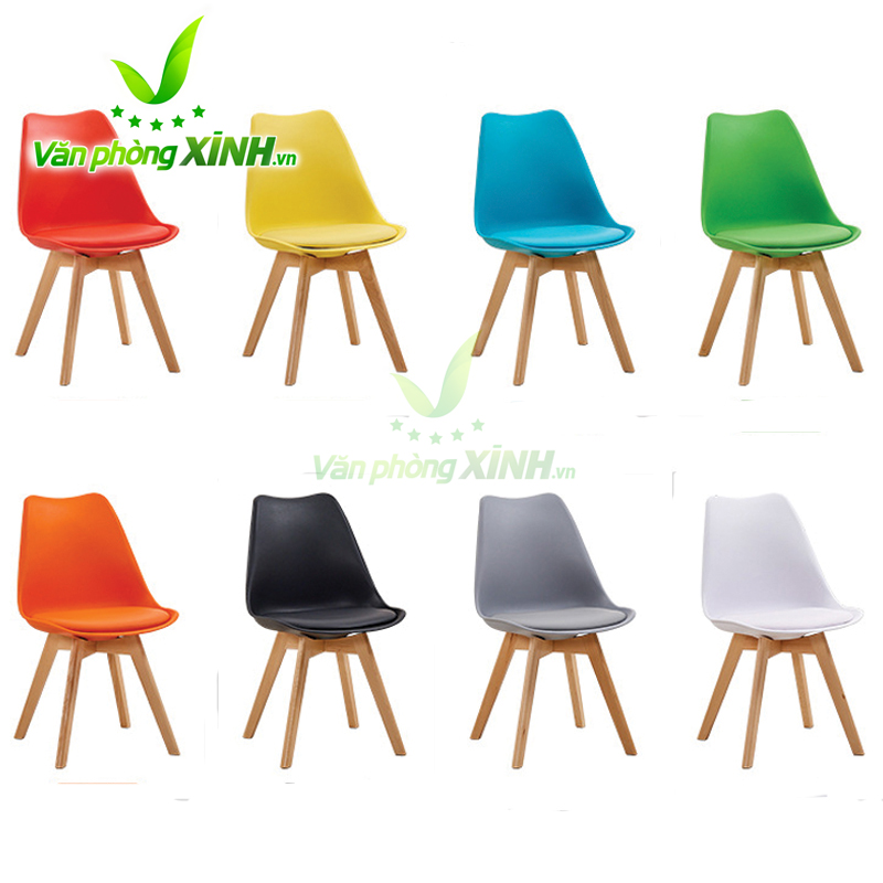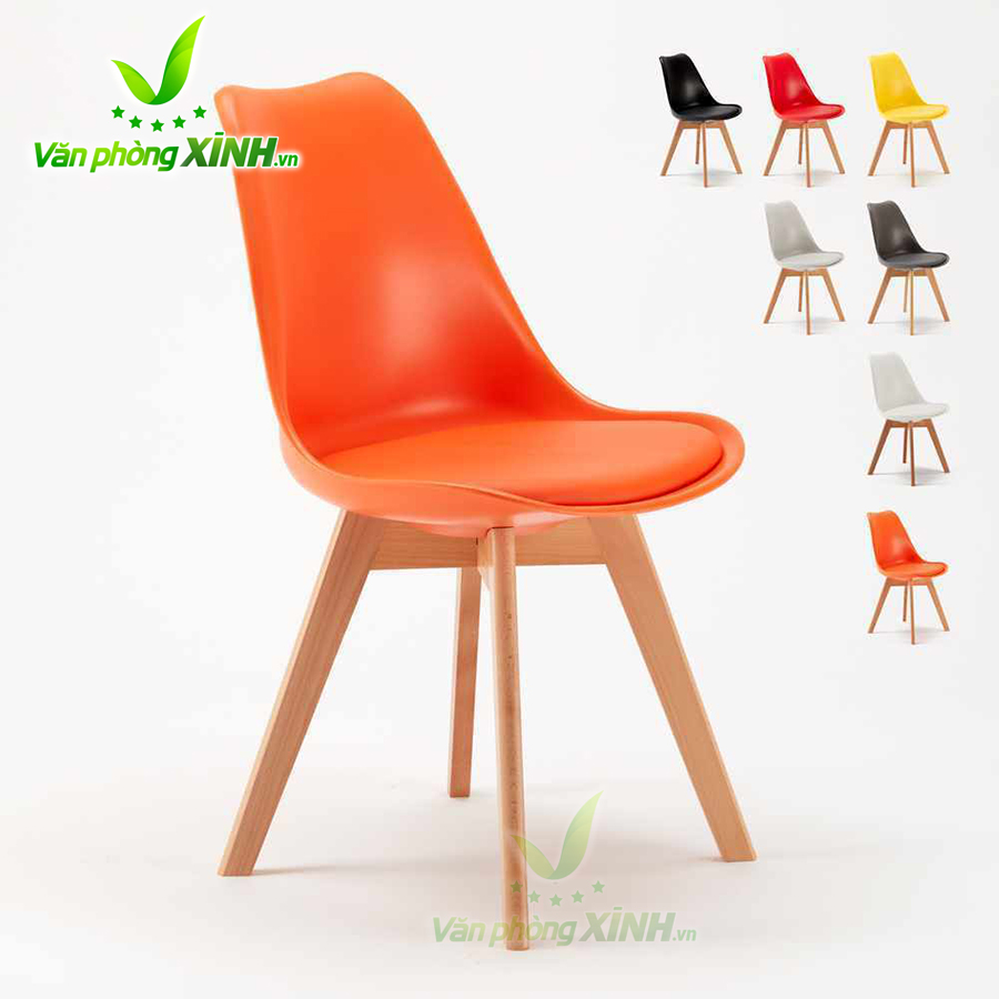 - Chất liệu:Chân gỗ sồi, thân ghế là chất liệu nhựa ABS chịu lực chống chầy xước