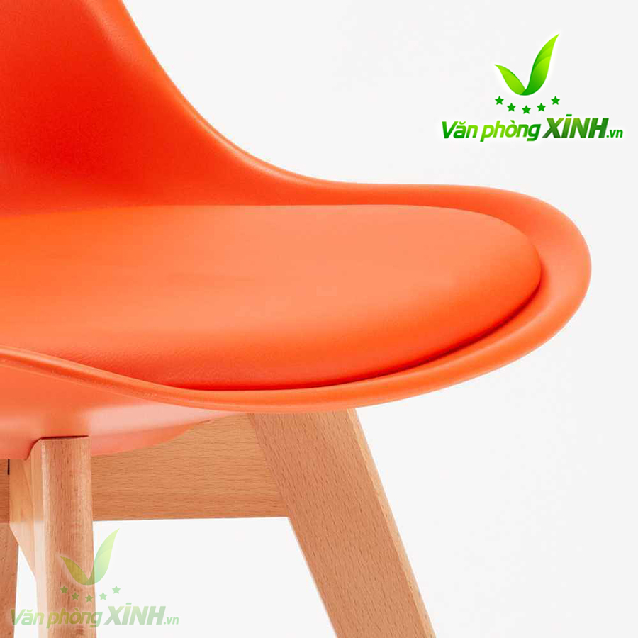 Ghế Eames Mặt Đệm Chân Gỗ EA11A là dòng ghế bọc da cao cấp của ghế eames được nhập khẩu nguyên chiếc. Ghế đệm mút bọc da chân mạ, mặt simili được làm từ nhựa cao cấp PP và sợi thủy tinh dẻo dai đúc nguyên khối với những đường cong nâng niu cơ thể người dùng. Mặt ngồi hõm sâu, dáng ghế uốn cong tựa như cầu vồng giúp giảm áp lực lên lưng và đùi. Dù ngồi lâu, người sử dụng cũng không bị đau mỏi lưng hay tê chân.