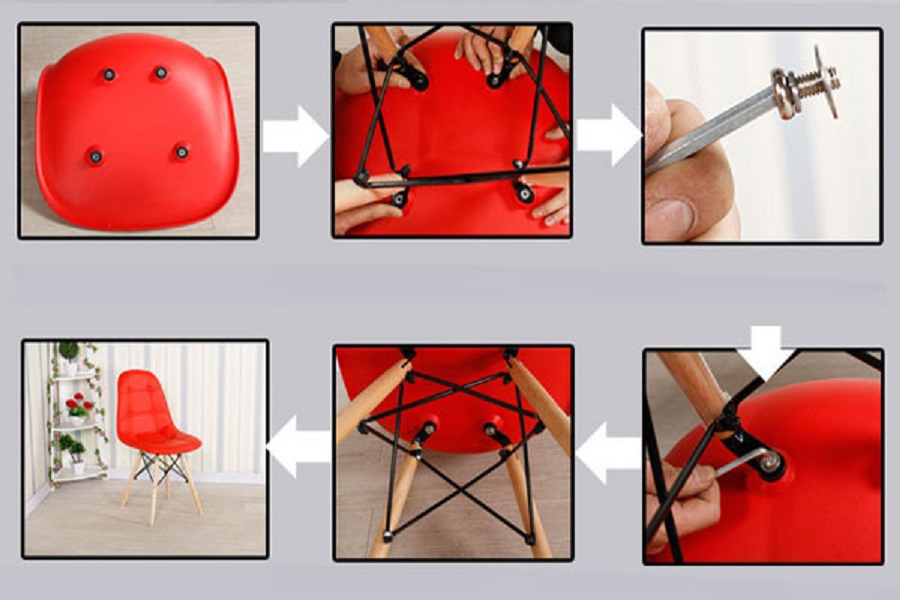 - Bước 2: Bắt phần thép nhằm cố định chân ghế vào thân ghế