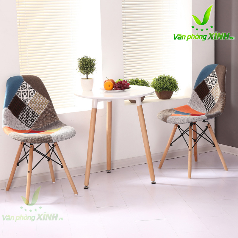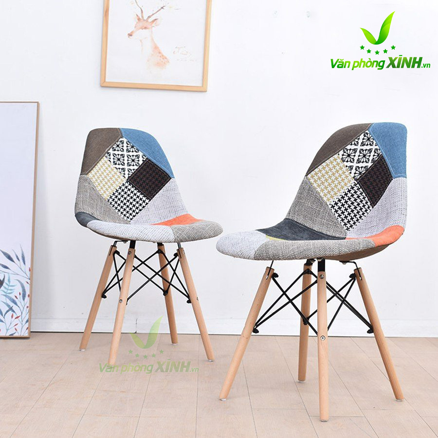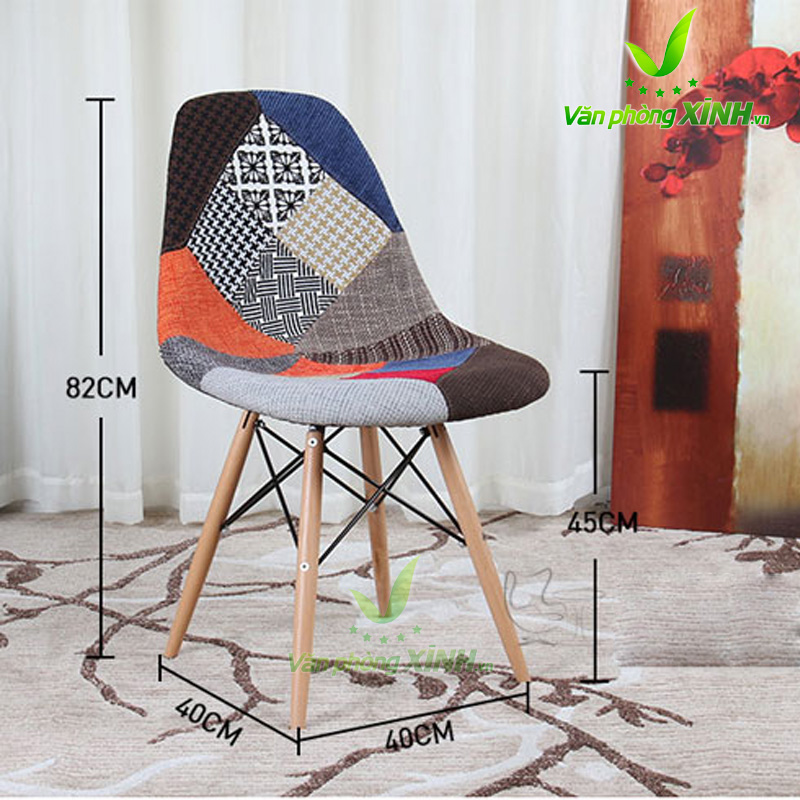 - Chất liệu: Bọc vải thổ cẩm cao cấp, Chân gỗ sồi đan sắt, thân ghế là chất liệu nhựa ABS chịu lực chống chầy xước,