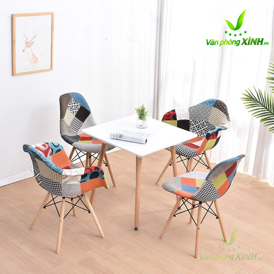 - Chất liệu: Bọc vải thổ cẩm cao cấp, Chân gỗ sồi đan sắt, thân ghế là chất liệu nhựa ABS chịu lực chống chầy xước,