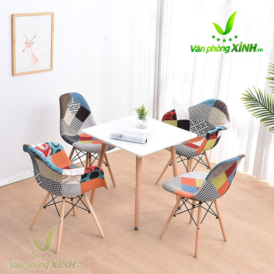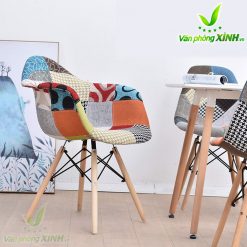 - Chất liệu: Bọc vải thổ cẩm cao cấp, Chân gỗ sồi đan sắt, thân ghế là chất liệu nhựa ABS chịu lực chống chầy xước,
