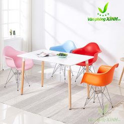- Chất liệu: Chân gỗ sồi đan sắt, thân ghế là chất liệu nhựa ABS chịu lực chống trầy xước,