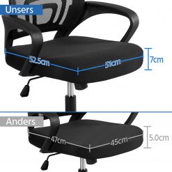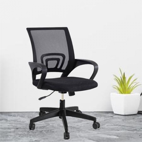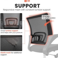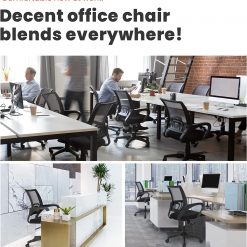 - Chất liệu: tựa lưới, mặt ngồi cốt gỗ, đệm mút, bọc nỉ lưới xốp; tay chân ghế bàng nhựa đen, Chân nhựa cao cấp