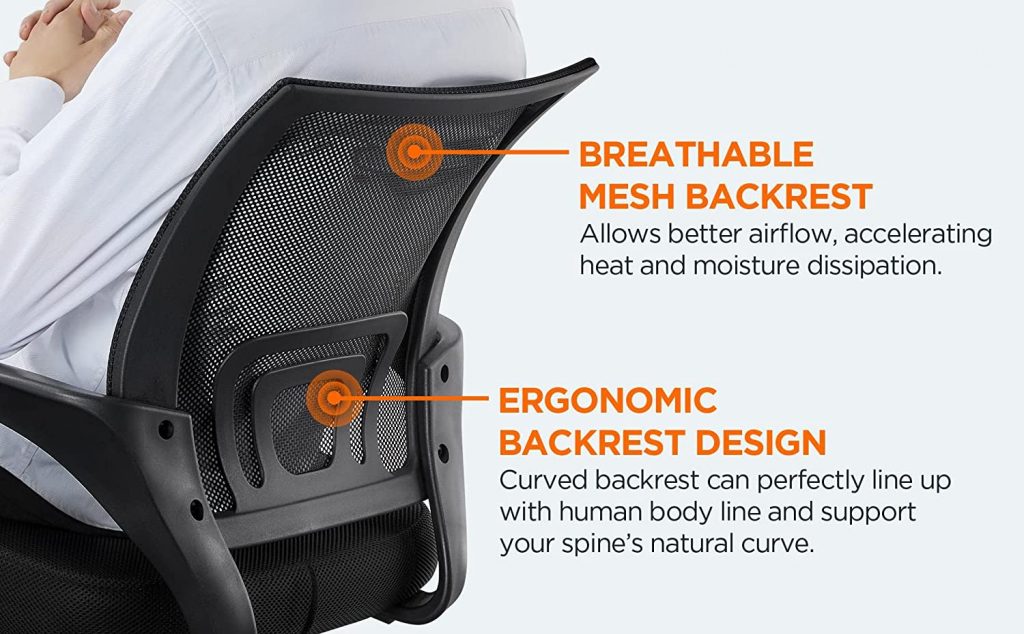 - Kết cấu khoa học (Khung xương cá): Sản phẩm kết cấu dạng lưng rời đệm, bảng lưng được bọc lưới có diện tích rộng kết hợp sử dụng nhiều đường cong uốn lượn giúp ôm sát cơ thể, tạo nên cấu trúc nâng đỡ tuyệt vời cho toàn bộ phần cột sống và 4 cơ bắp lưng (Cơ gian mõm ngang – intertransversarii; cơ cột sống nhiều nhánh – multifidus spinae; cơ cổ và vai – trapezius; cơ tam giác cánh lưng – Latissimus dorsi). Từ đó hạn chế những cơn đau xuất hiện ở vùng thắt lưng, đau mỏi, thoái hóa cột sống do ngồi lâu, vận động ít.