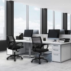 - Xoay hướng làm việc: Chiếc ghế lưới ngả lưng chân xoay có bánh xe trượt phía dưới tiện lợi, giúp bạn có thể xoay chuyển dễ dàng mọi góc độ để trao đổi công việc với mọi người.