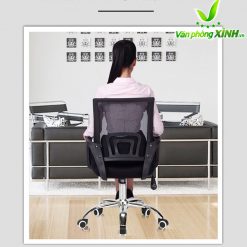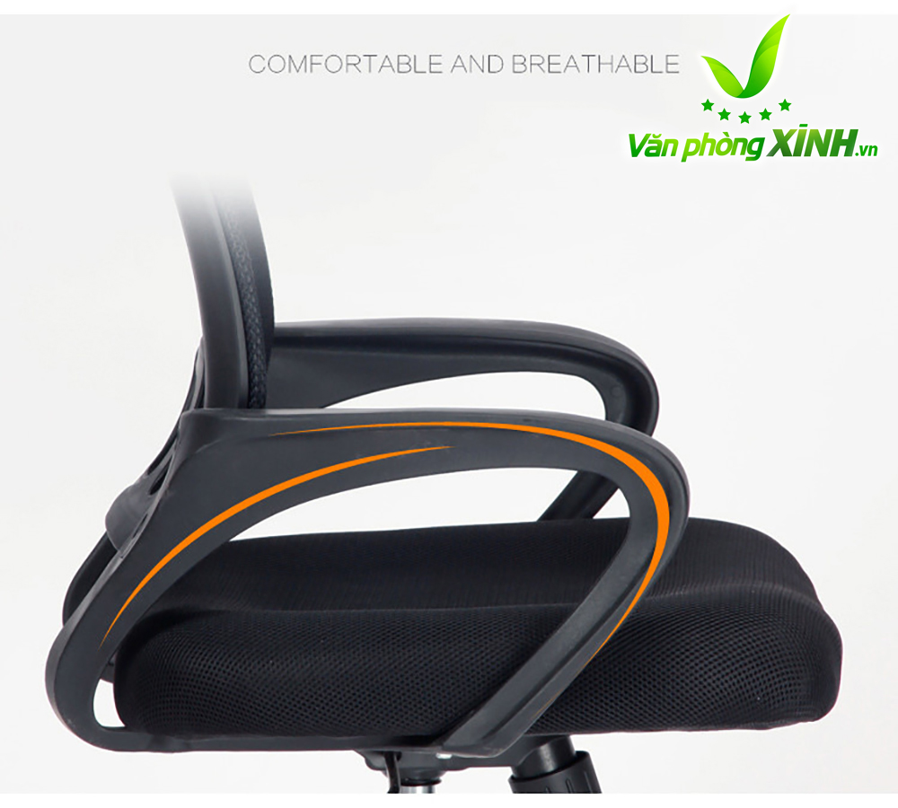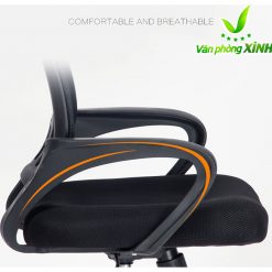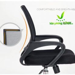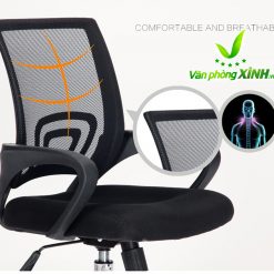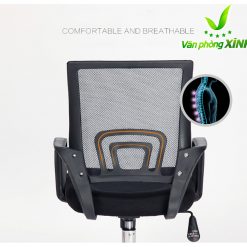 - Lưng ghế: Khung được thiết kế trang trí đỡ phần lưng nhựa màu đen, bọc vải lưới đem lại cảm giác thoải mái cho người dùng.