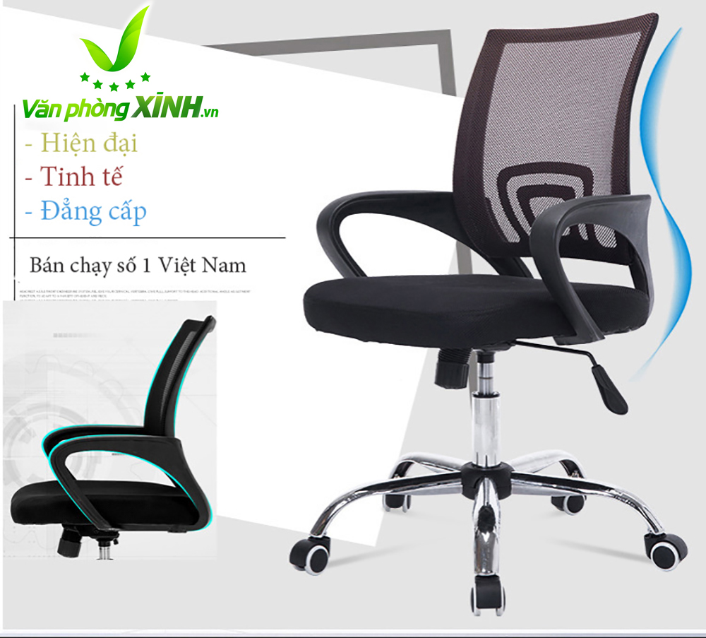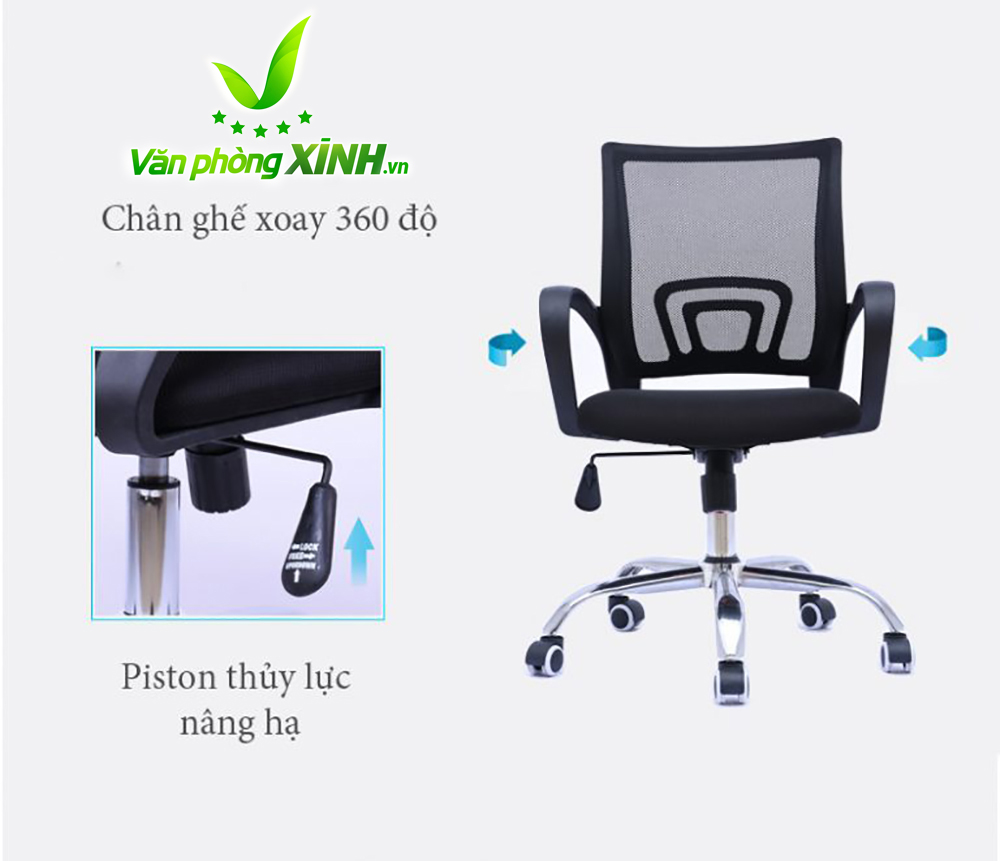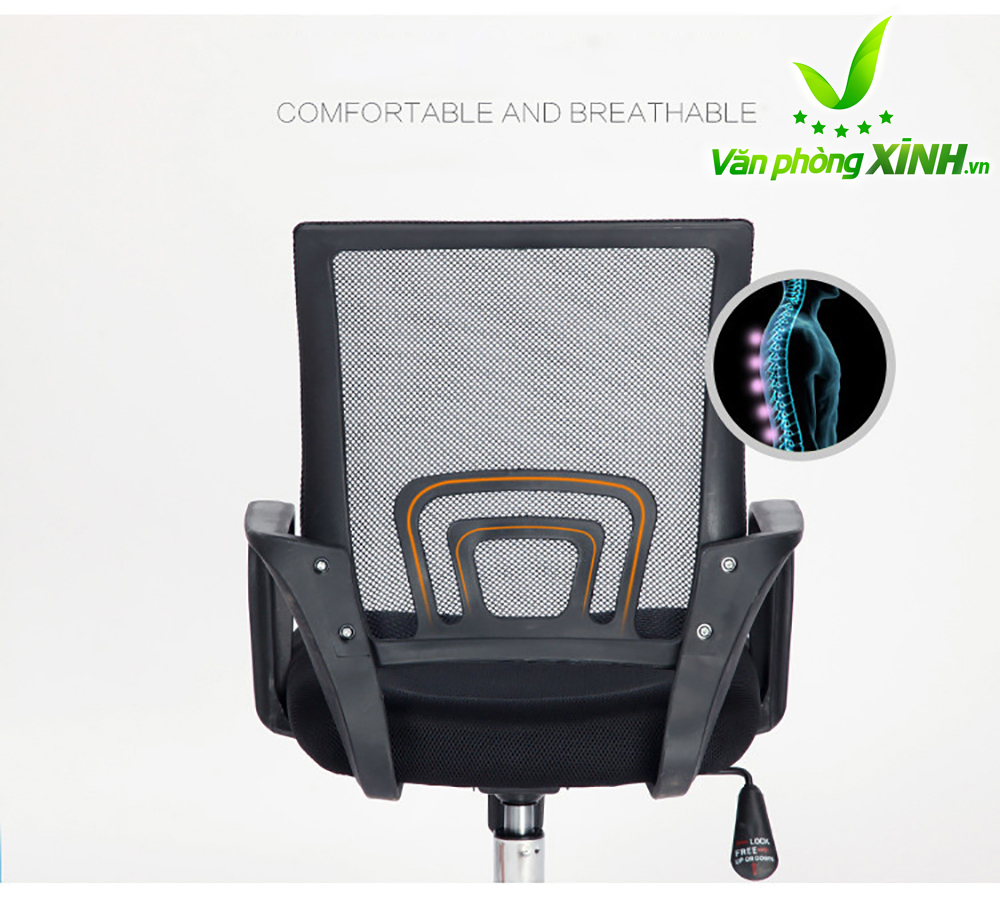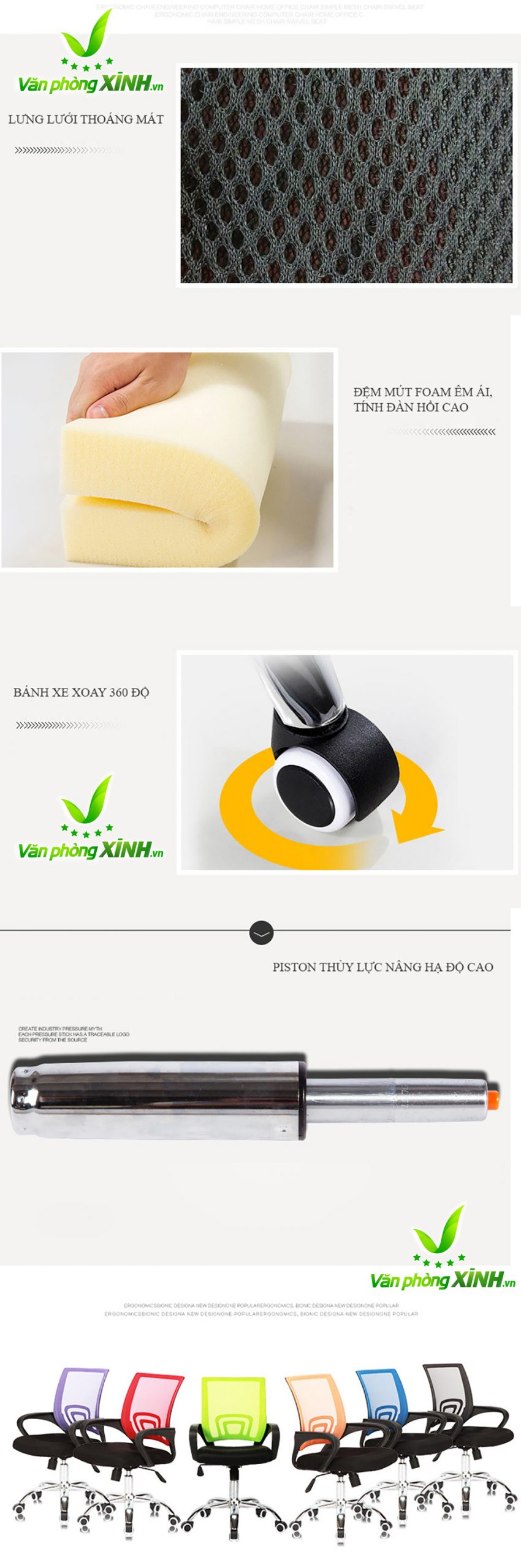 - Thiết kế thông minh tiện ích: chất liệu vải lưới ở phần lưng ghế kết hợp phần chân xoay 360 độ tạo nên một tổng thể rất thanh thoát, hiện đại và sang trọng, phù hợp nhiều không gian văn phòng khác nhau.