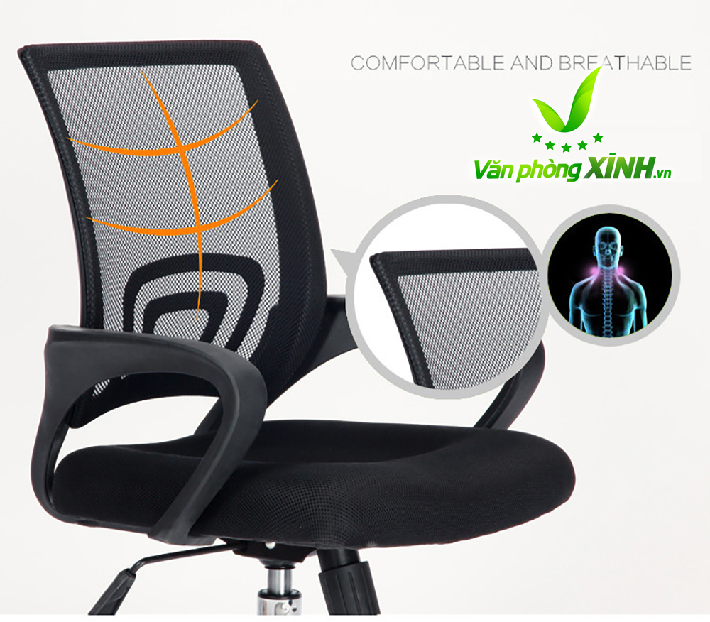 - Sức Khỏe: Ghế xoay lưới mang lại sức khỏe tốt cho người sử dụng. Điều này được công nhận bởi chính kết cấu thông minh của chúng. Kết cấu lưng lưới hơi cong về phần lưng giúp ôm sát vào cột sống khi ngồi, chống mỏi, chống đau lưng tạo nên một thư thế ngồi khoa học trong suốt thời gian dài. Phần lưng tựa được tính toán tạo ra độ cong và độ lún phù hợp giúp người dùng luôn trong tư thế thoải mái nhất khi làm việc. Đệm ngồi bằng vải và mút tự nhiên rất êm ái.