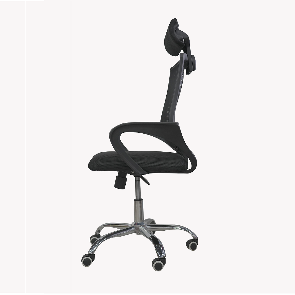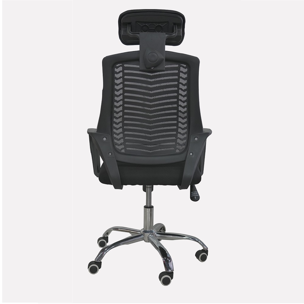 - Chất liệu: tựa lưới, mặt ngồi cốt gỗ, đệm mút, bọc nỉ lưới xốp; tay chân ghế bàng nhựa đen