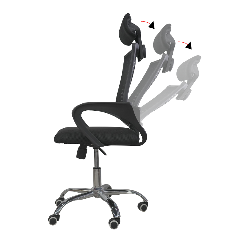- Chất liệu: tựa lưới, mặt ngồi cốt gỗ, đệm mút, bọc nỉ lưới xốp; tay chân ghế bàng nhựa đen