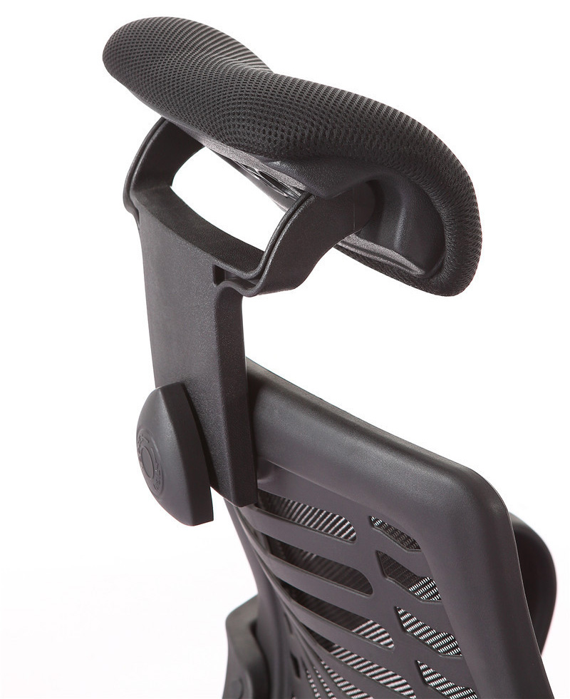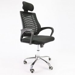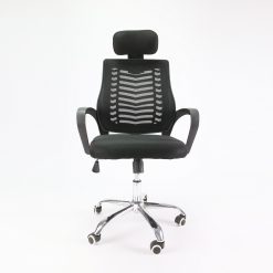 - Chất liệu: tựa lưới, mặt ngồi cốt gỗ, đệm mút, bọc nỉ lưới xốp; tay chân ghế bàng nhựa đen