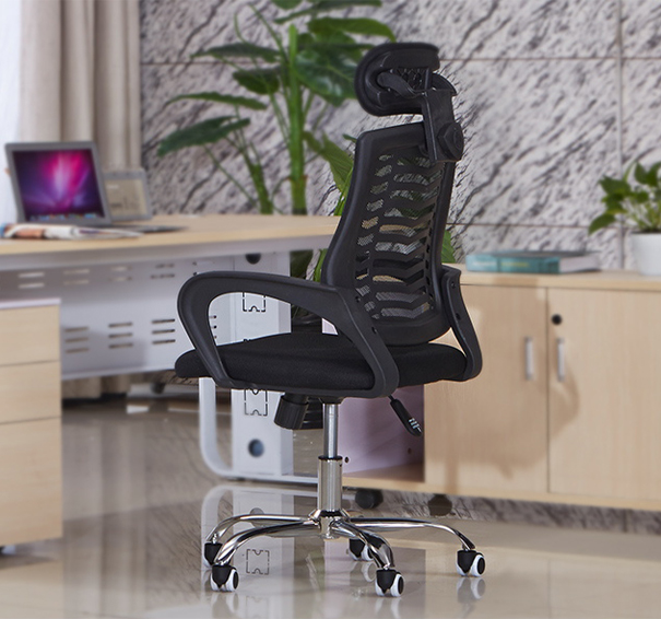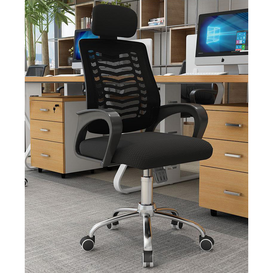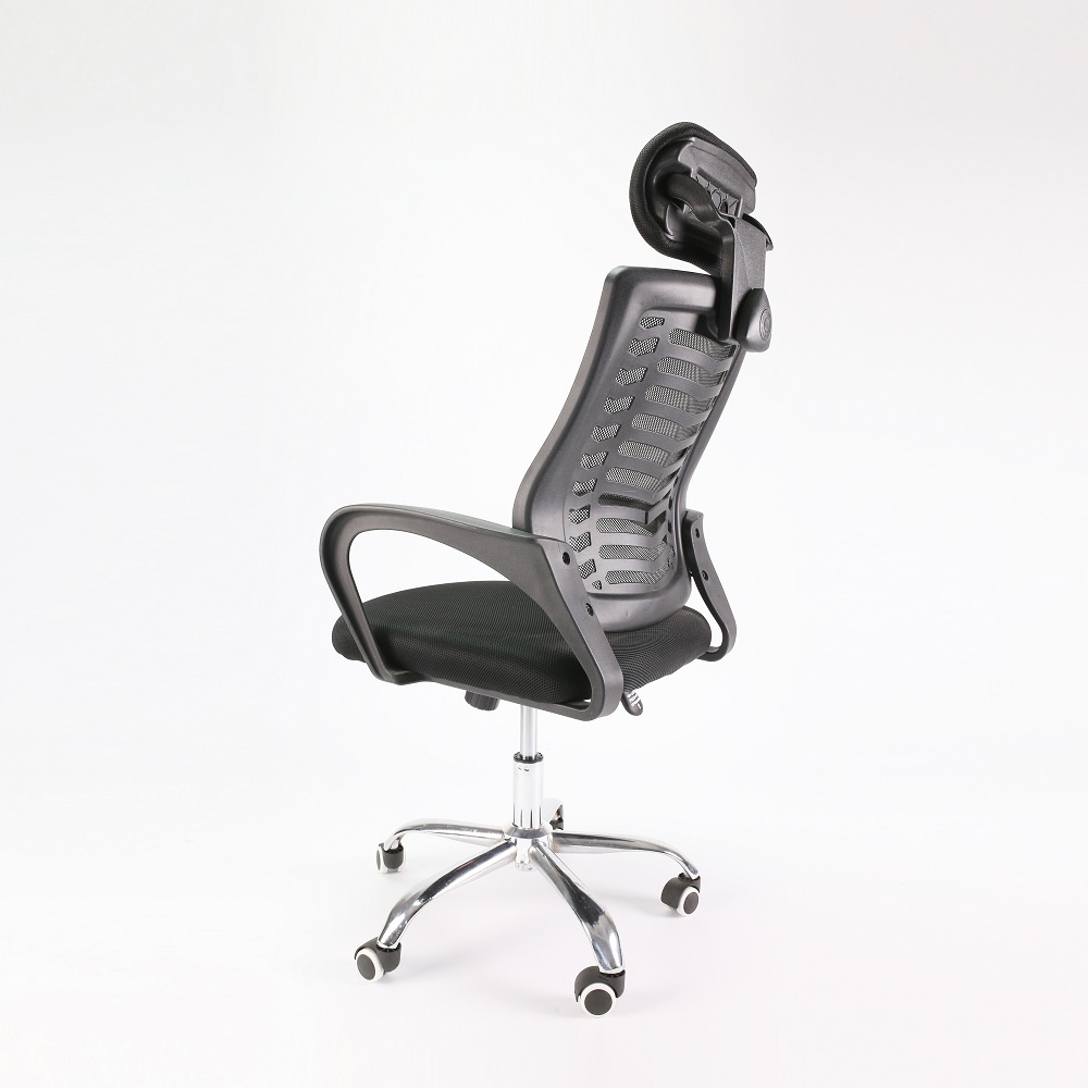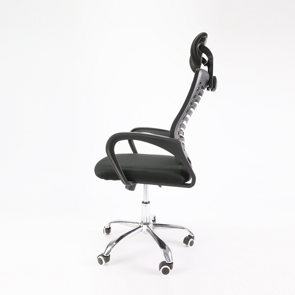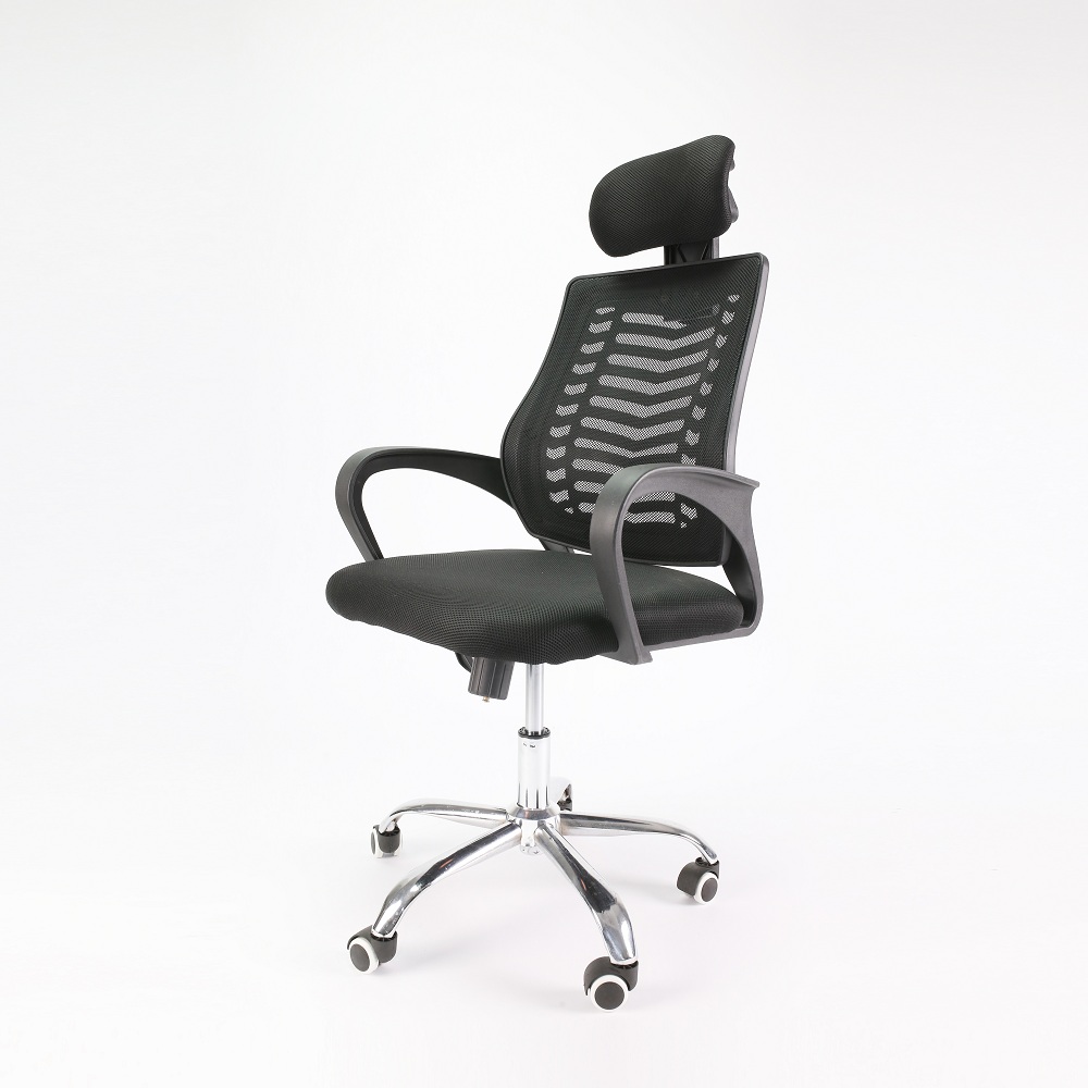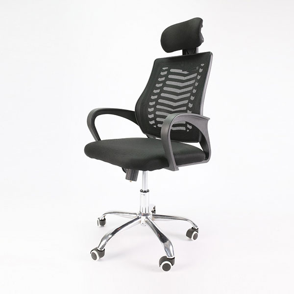 - Chất liệu: tựa lưới, mặt ngồi cốt gỗ, đệm mút, bọc nỉ lưới xốp; tay chân ghế bàng nhựa đen