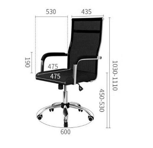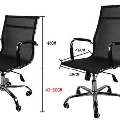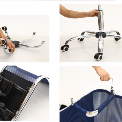 - Chất liệu: tựa lưới, mặt ngồi cốt gỗ, đệm mút, bọc nỉ lưới xốp; tay chân ghế bàng nhựa đen