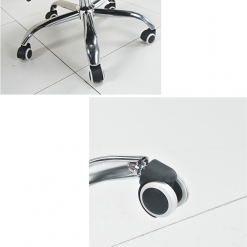 - Chân ghế: Chân hình sao mạ Crom, có 5 bánh xe làm từ nhựa vững chắc và dễ dàng xoay chuyển linh hoạt khi sử dụng. Có cần hơi điều chỉnh độ cao theo nhu cầu sử dụng của người dùng.
