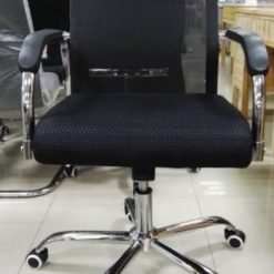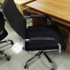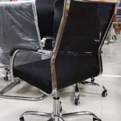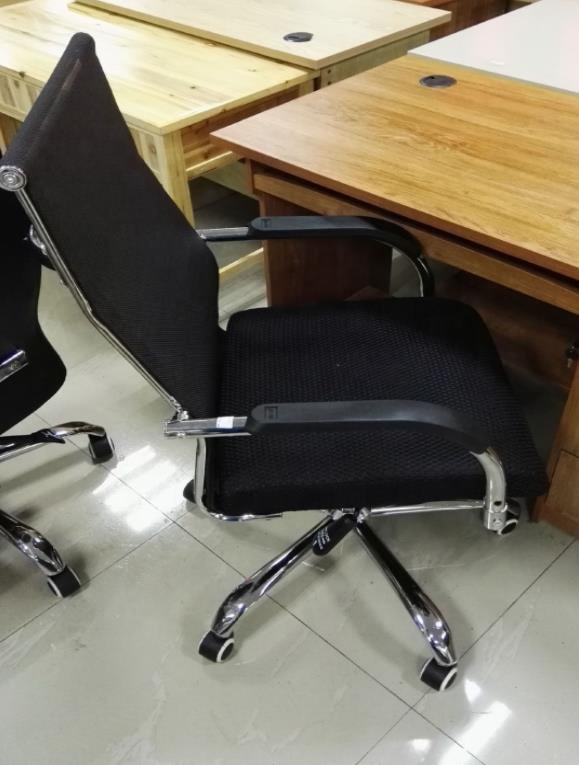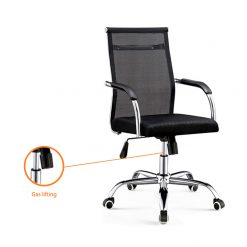 - Chất liệu: tựa lưới, mặt ngồi cốt gỗ, đệm mút, bọc nỉ lưới xốp; tay chân ghế bàng nhựa đen