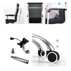 - Lưng ghế: Khung được thiết kế trang trí đỡ phần lưng nhựa màu đen, bọc vải lưới đem lại cảm giác thoải mái cho người dùng.