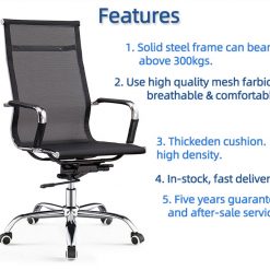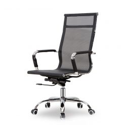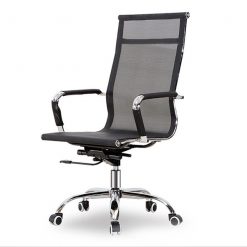 - Chất liệu: tựa lưới, mặt ngồi cốt gỗ, đệm mút, bọc nỉ lưới xốp; tay chân ghế bàng nhựa đen