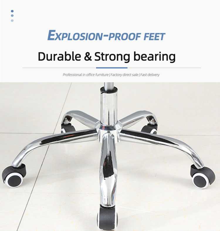 - Chân ghế: Chân hình sao mạ Crom, có 5 bánh xe làm từ nhựa vững chắc và dễ dàng xoay chuyển linh hoạt khi sử dụng. Có cần hơi điều chỉnh độ cao theo nhu cầu sử dụng của người dùng.