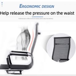 - Lưng ghế: Khung được thiết kế trang trí đỡ phần lưng nhựa màu đen, bọc vải lưới đem lại cảm giác thoải mái cho người dùng.