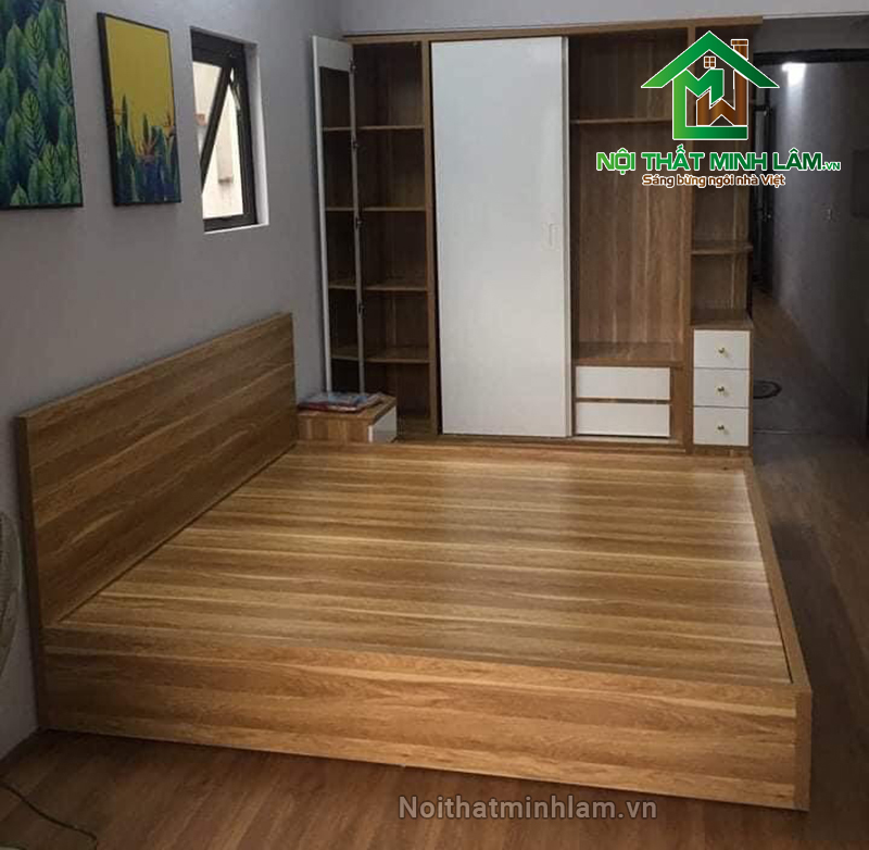 Giường ngủ hiện đại bằng gỗ cho gia đình GN01 trở thành điểm nhấn ấn tượng cho mỗi không gian phòng ngủ nó xuất hiện. Không chỉ cung cấp không gian nghỉ ngơi cho người dùng, giường ngủ hiện đại của Nội Thất Minh Lâm còn đi kèm với kệ để đồ 2 bên đầu giường. Bạn có thể tận dụng phần không gian này để đặt đèn bàn, khung tranh hay đồng hồ báo thức.