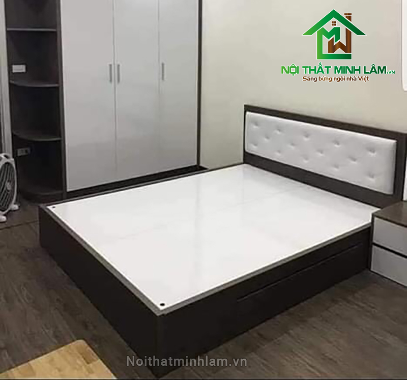Giường ngủ hiện đại bằng gỗ công nghiệp cho gia đình GN14 trở thành điểm nhấn ấn tượng cho mỗi không gian phòng ngủ nó xuất hiện. Không chỉ cung cấp không gian nghỉ ngơi cho người dùng, giường ngủ hiện đại của Nội Thất Minh Lâm còn đi kèm với kệ để đồ 2 bên đầu giường. Bạn có thể tận dụng phần không gian này để đặt đèn bàn, khung tranh hay đồng hồ báo thức.