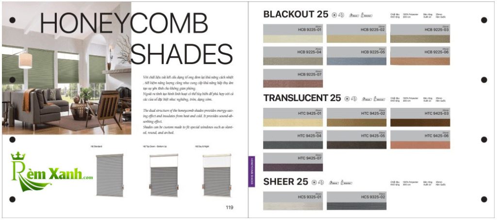 - Đặc tính: Cản sáng 100%, chống nắng, cách nhiệt, chống cháy, kháng khuẩn