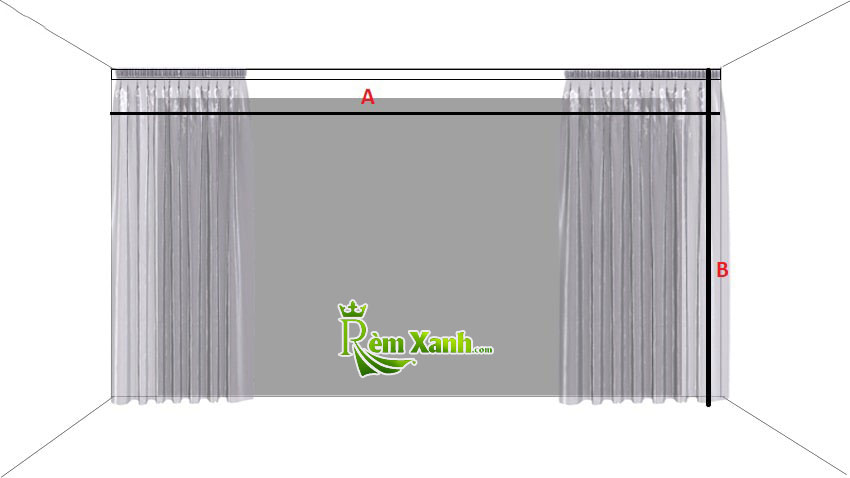 – Chiều rộng của rèm cửa = Chiều rộng khung cửa + kích thước phủ ngoài