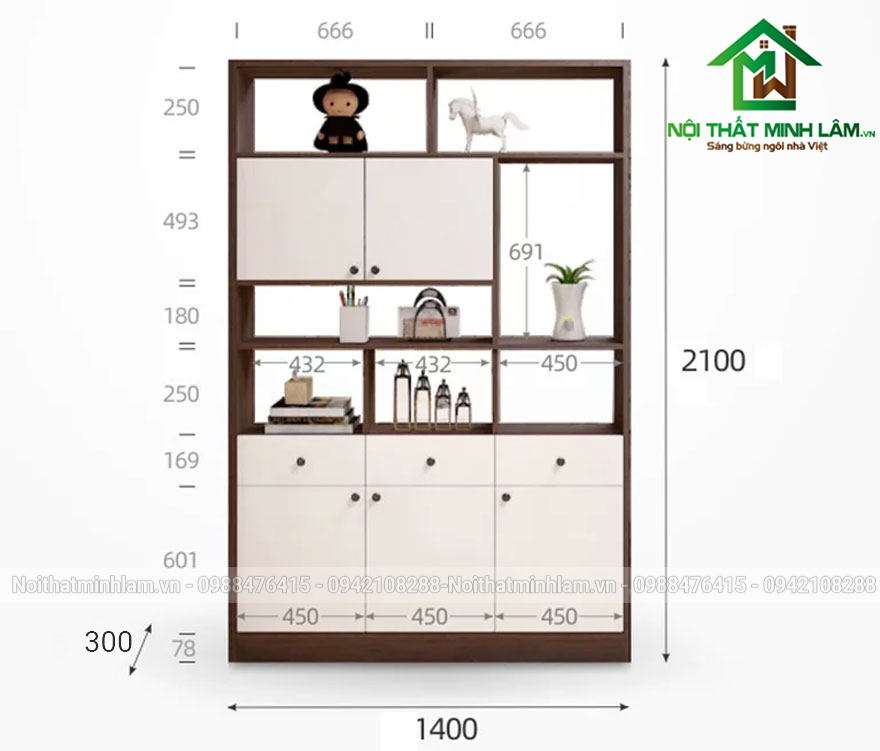 - Mẫu B: 1400 x 295 x 2100mm có giá bán: 5.750.000đ