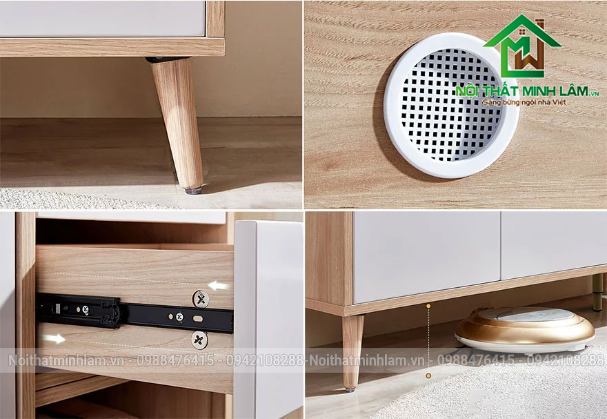 - Chất liệu: Gỗ MDF phủ Melamine chống ẩm, chống mối mọt vân gỗ, chân gỗ tự nhiên